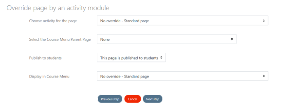 Overriding a page with a single activity let installing an activity (such a quiz, and assignment or a lesson) in the linear course progression.