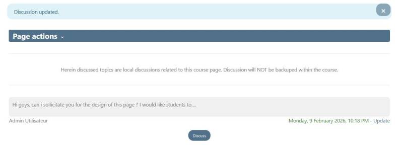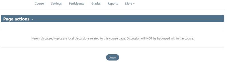 Keep in mind that this is a very simple accessory, and hos no complex message managing features as a moodle forum. Discussions will NOT be saved in the course backup.