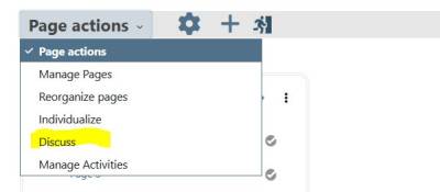 If page dicussions are enabled, the corresponding entry will appear in the Page action menu: