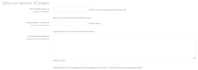 Some ActiveProLearn plugins provide access to an enriched documentation provided in addition to TMA support. The following parameters allows configuring access to this documentation.