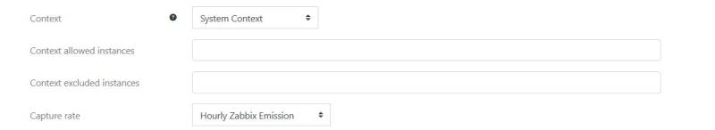 Context: System context will send a unique value based on query. Other contexts will send as many values as context instances in the context level. This will generate discoverable keys of the form: moodle.custom.<contextlevel>.<instanceid>.<itemname>. These keys match the “discorevering” model of Zabbix.