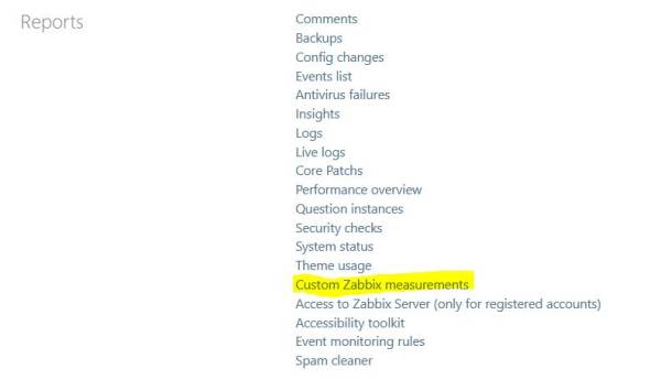 Path : Site admin ⇒ reports ⇒ Custom Zabbix Measurements