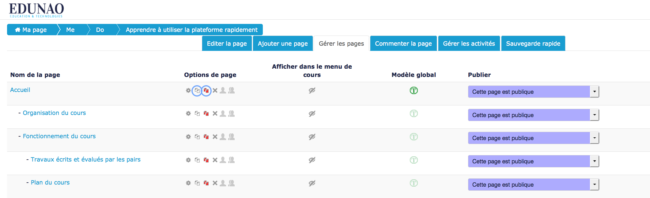 - Dupliquer les pages